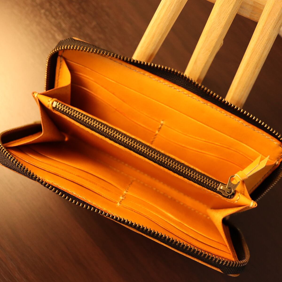 ・内装の特徴: カードポケット11箇所、ファスナー付きコインケース(縦70mm×横180mm)に加え、内部片側に仕切りが1箇所あります。